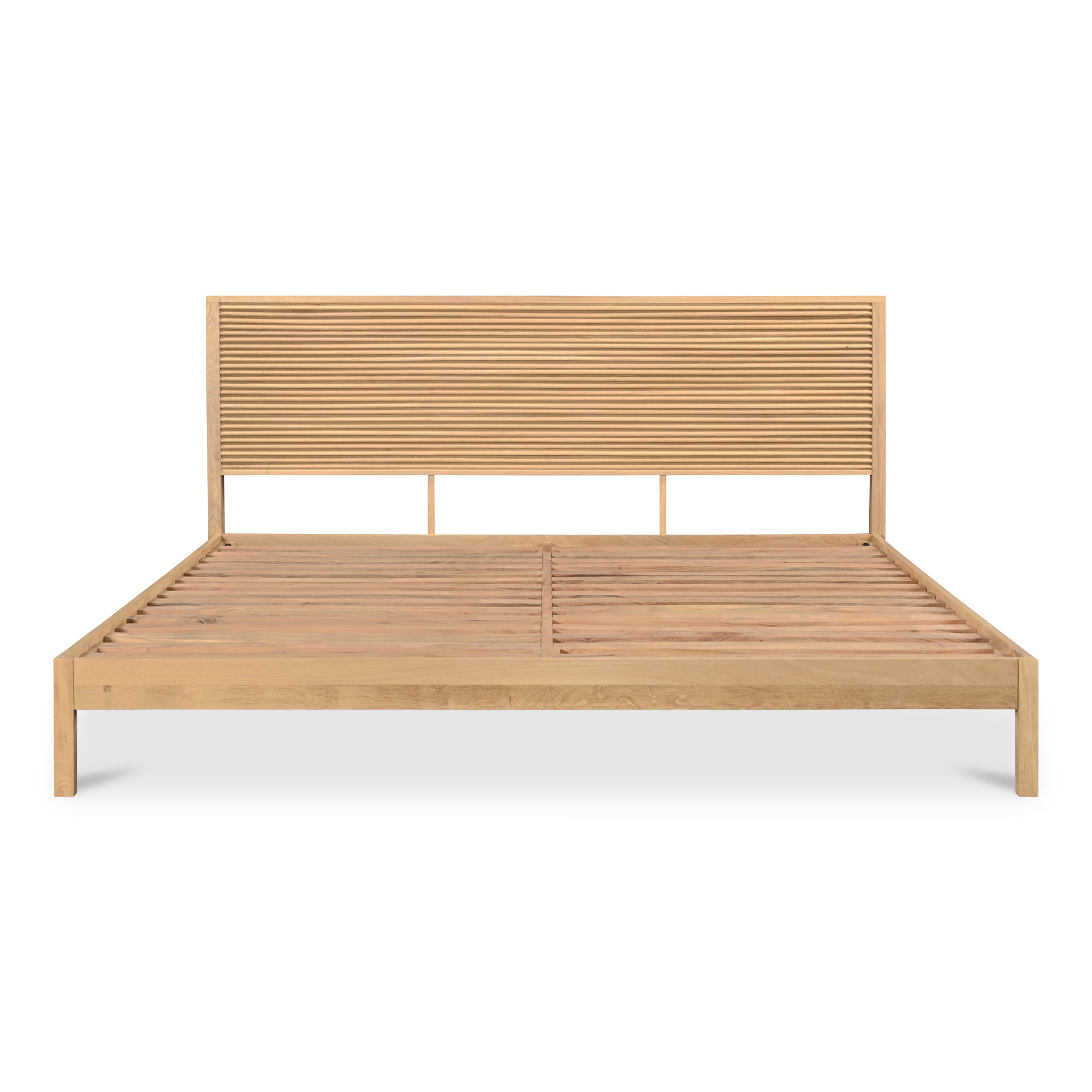 Inspired by the jalousie windows of Florida, the Teeda queen bed’s shutter-like headboard evokes memories of warm, tropical days where the aroma of freshly-picked oranges and sizzling BBQed prawns fill the air. Its clever arrangement of slats creates an exquisite play of light and shadow, a stunning visual element that adds depth and texture to any space. Crafted from solid oak, this bed exudes timelessness while providing plenty of visual intrigue.